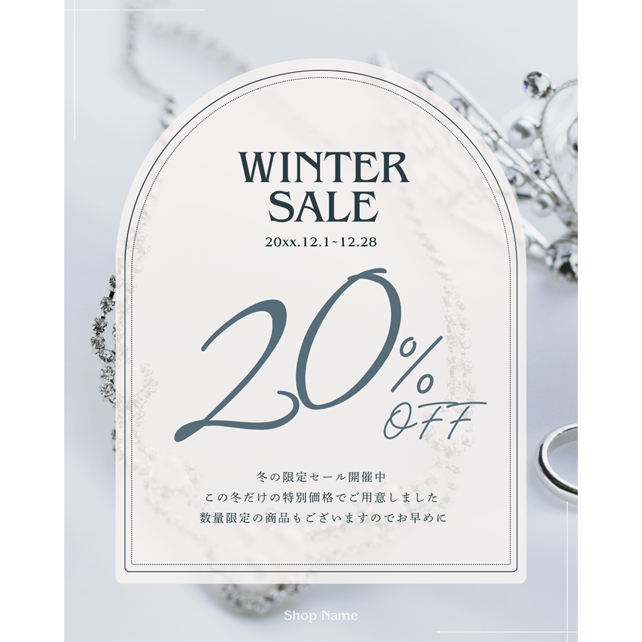くすみカラーで落ち着いたトーンに、手書き風の数字が程よいインパクトを与え、営業色を抑えながら上品にPRできます。