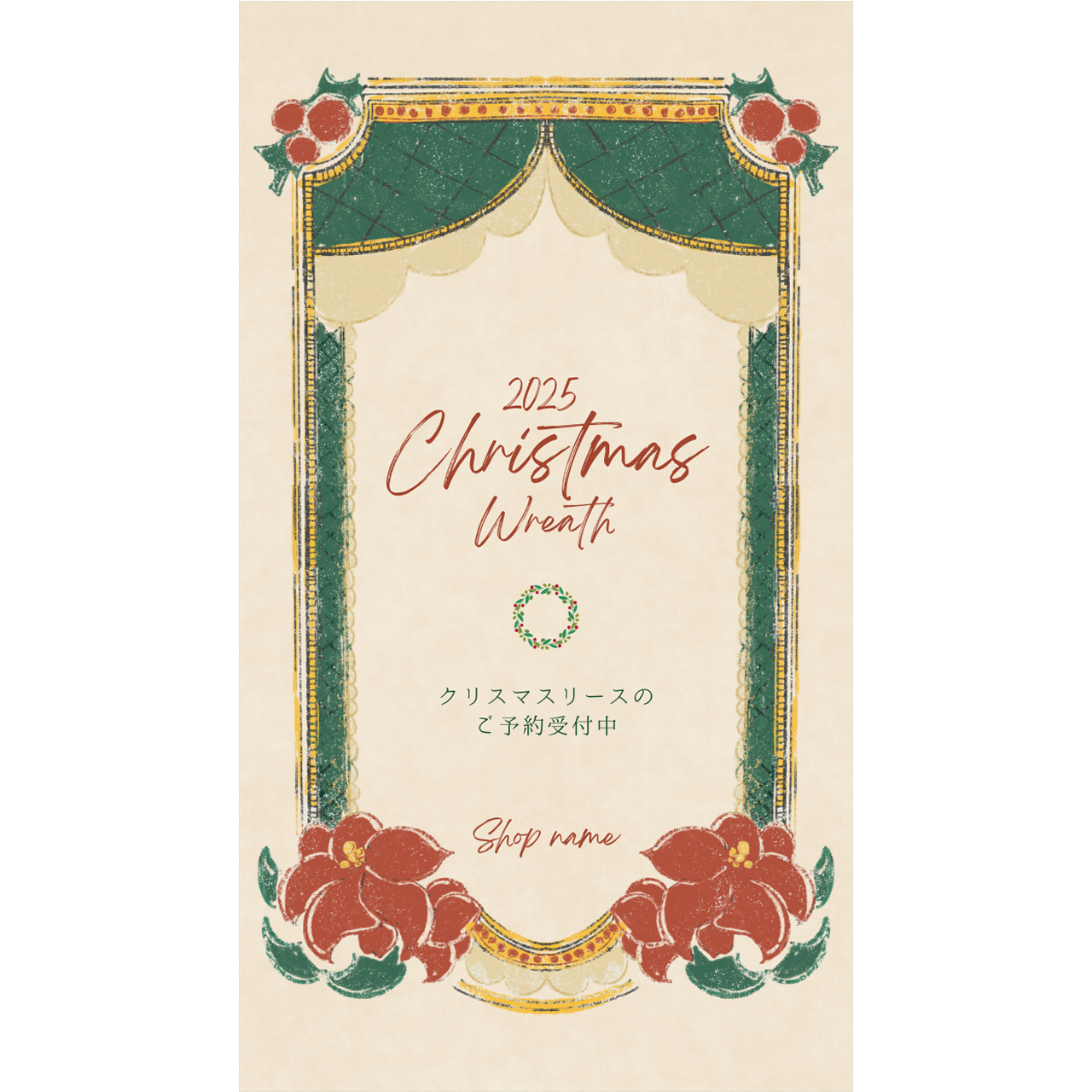 クリスマスシーズンの特別なギフトやイベント告知に使える、アンティーク調の世界観をテーマにしたテンプレートです。
