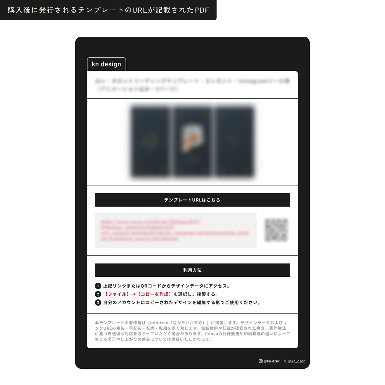 ご購入後にテンプレートのURLが記載されたPDFが発行されます。